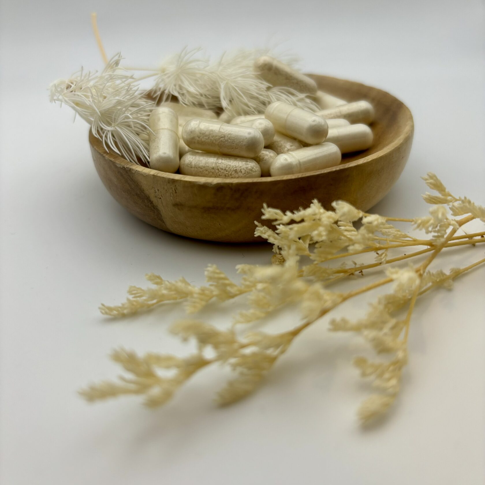 HPMC (Hydroxypropyl Methylcellulose) — это полимер растительного происхождения, получаемый из древесины или хлопка. Он используется как основа для создания веганских капсул, полностью без животного желатина, ГМО, аллергенов и глютена.